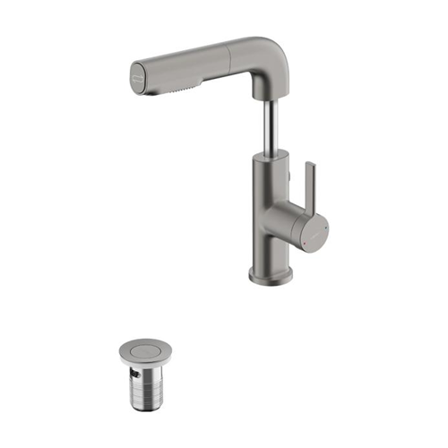 恒潔HMF158-115B-SH:龍頭水嘴可自由伸縮,能靈活切換多種出水模式,方便洗頭和清潔面盆。