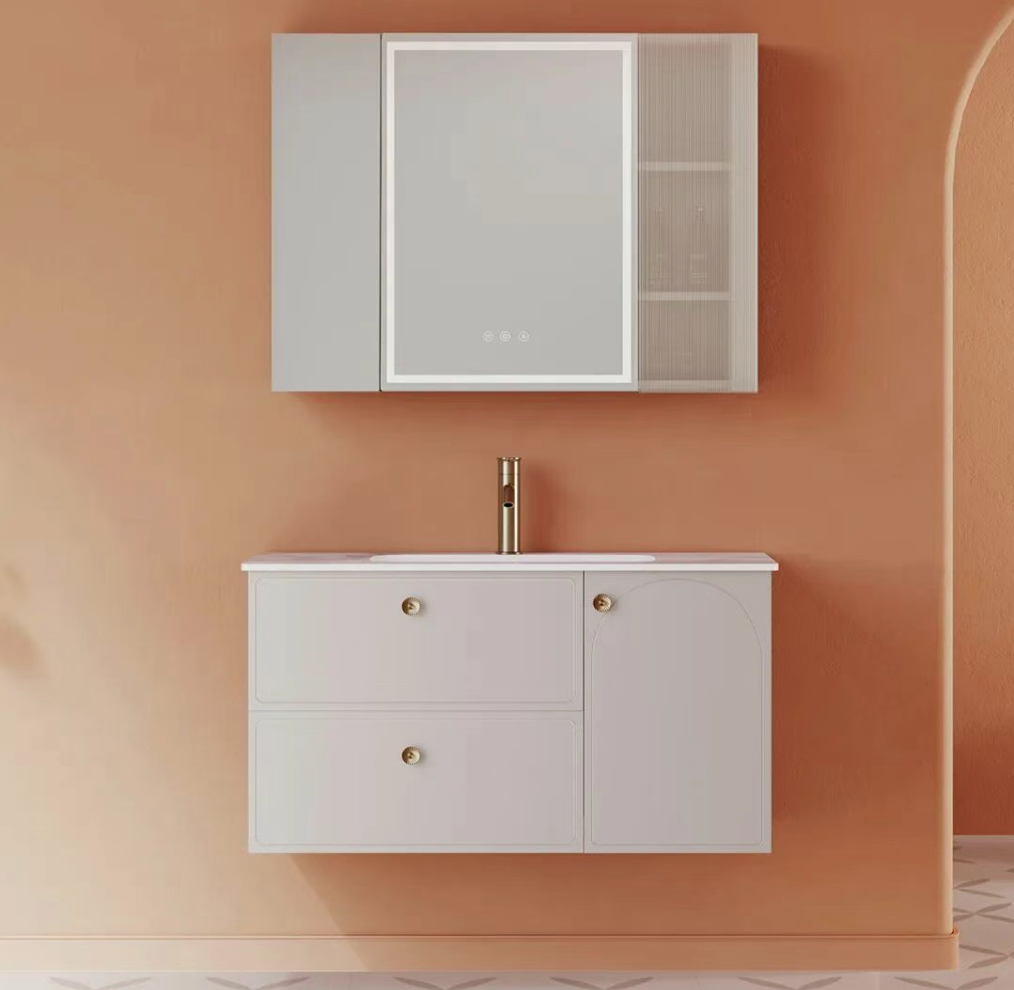 精細化收納系統:巧妙運用鏡背空間作為美妝收納區,為口紅、面膜等小件物品提供專屬的收納位置。鏡柜與雙抽柜體分工明確,讓各類物品都能井然有序。