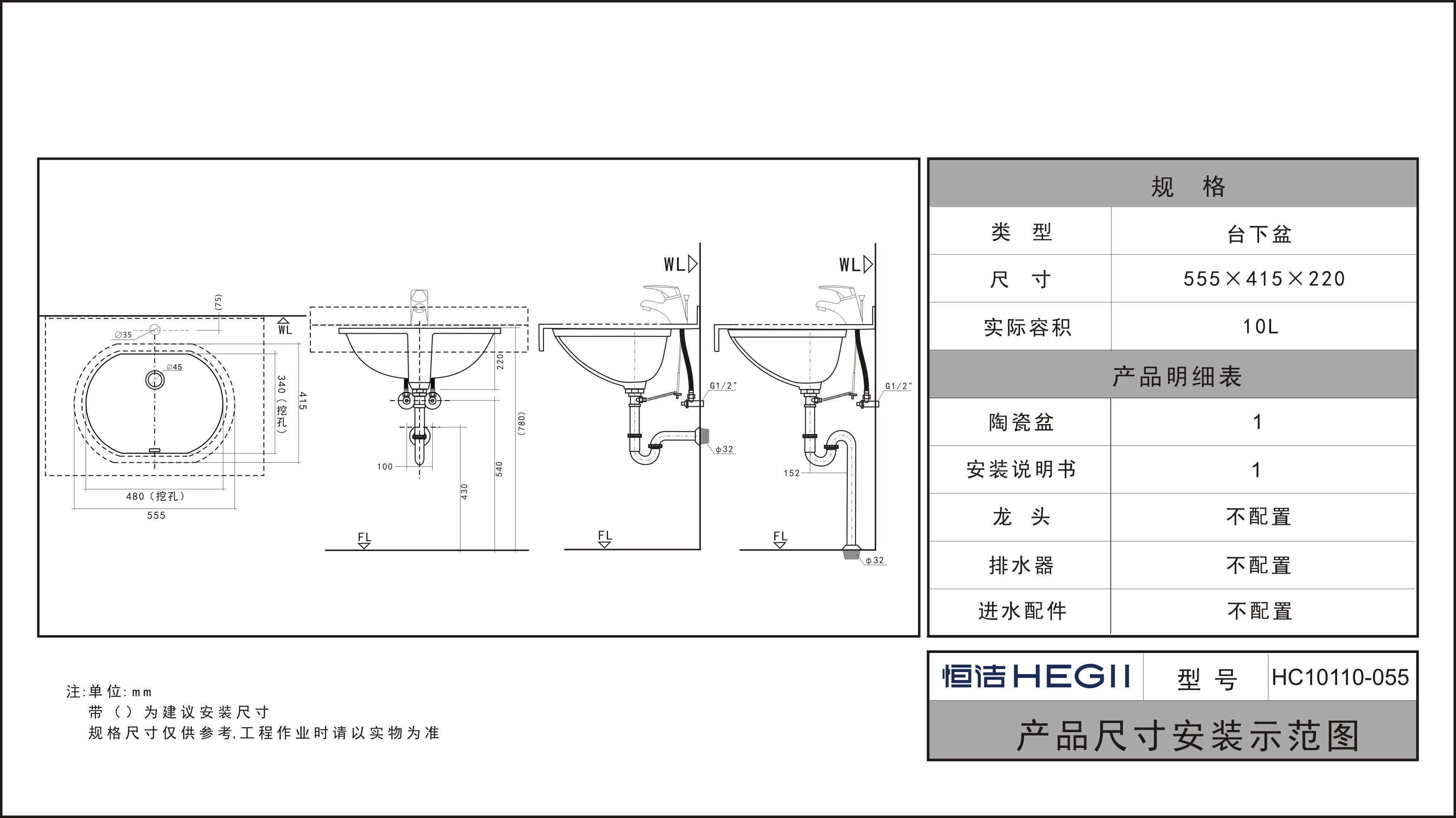 HC10110-055圓形臺下盆